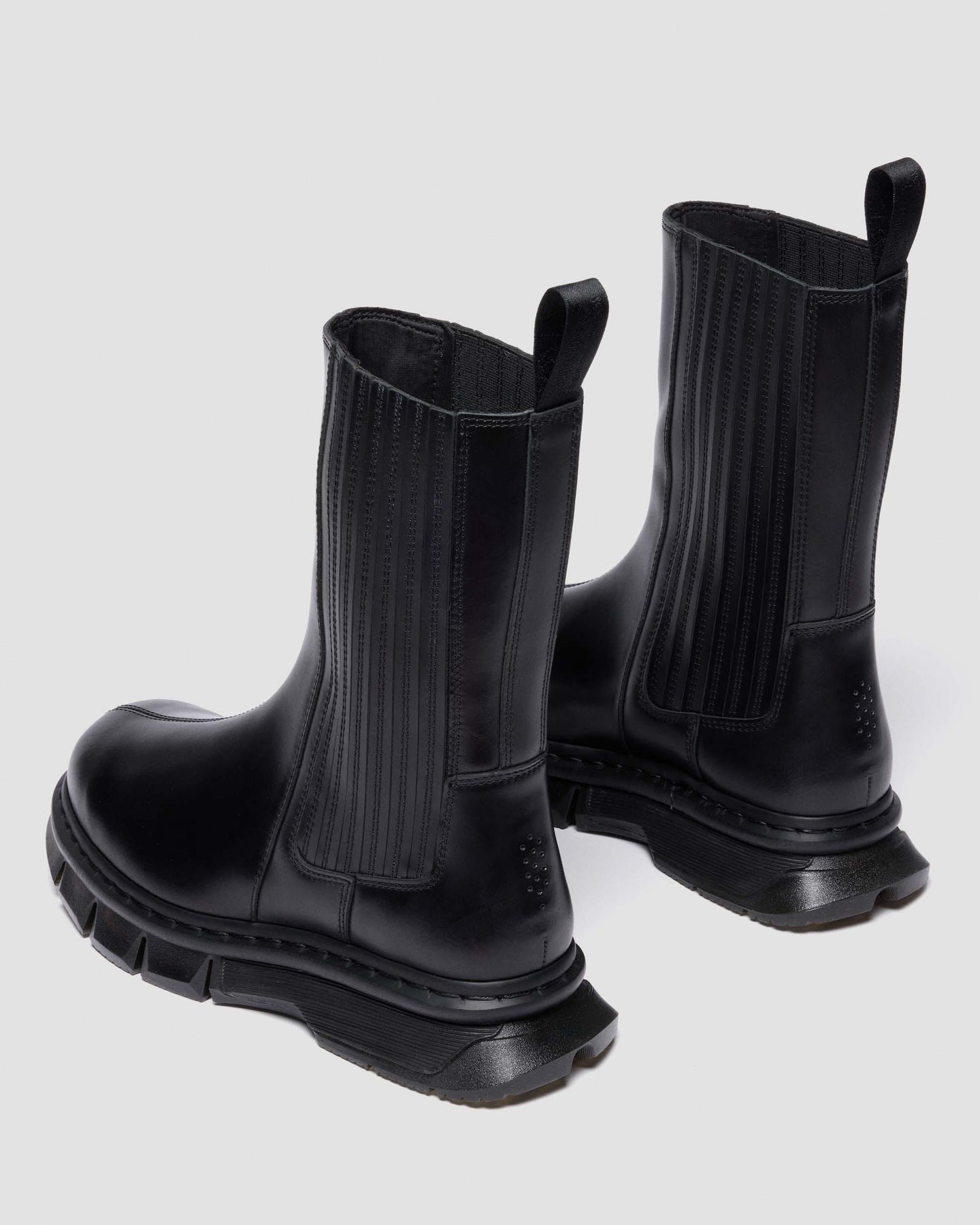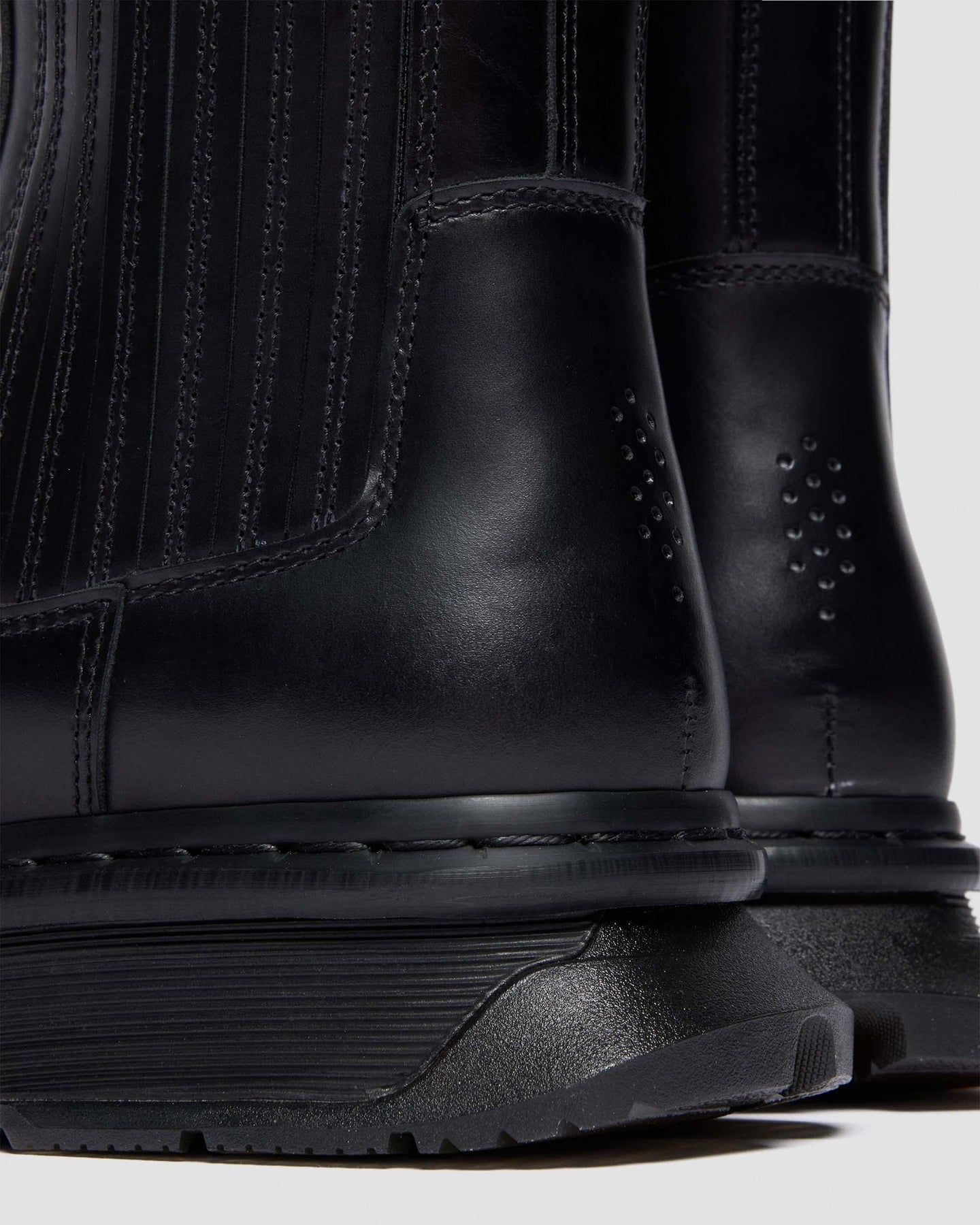 Crafted from easy-wearing, smooth Orleans leather, the QUBIST stands higher up the leg than traditional Chelsea boots, with a subtle elasticated leather gusset. The all-black upper is secured to the flexile outsole with a black-on-black welt stitch and fitted with a wide-footbed SoftWair insole for a more natural fit. And each pair is signed with an AirWair monochrome heel loop.