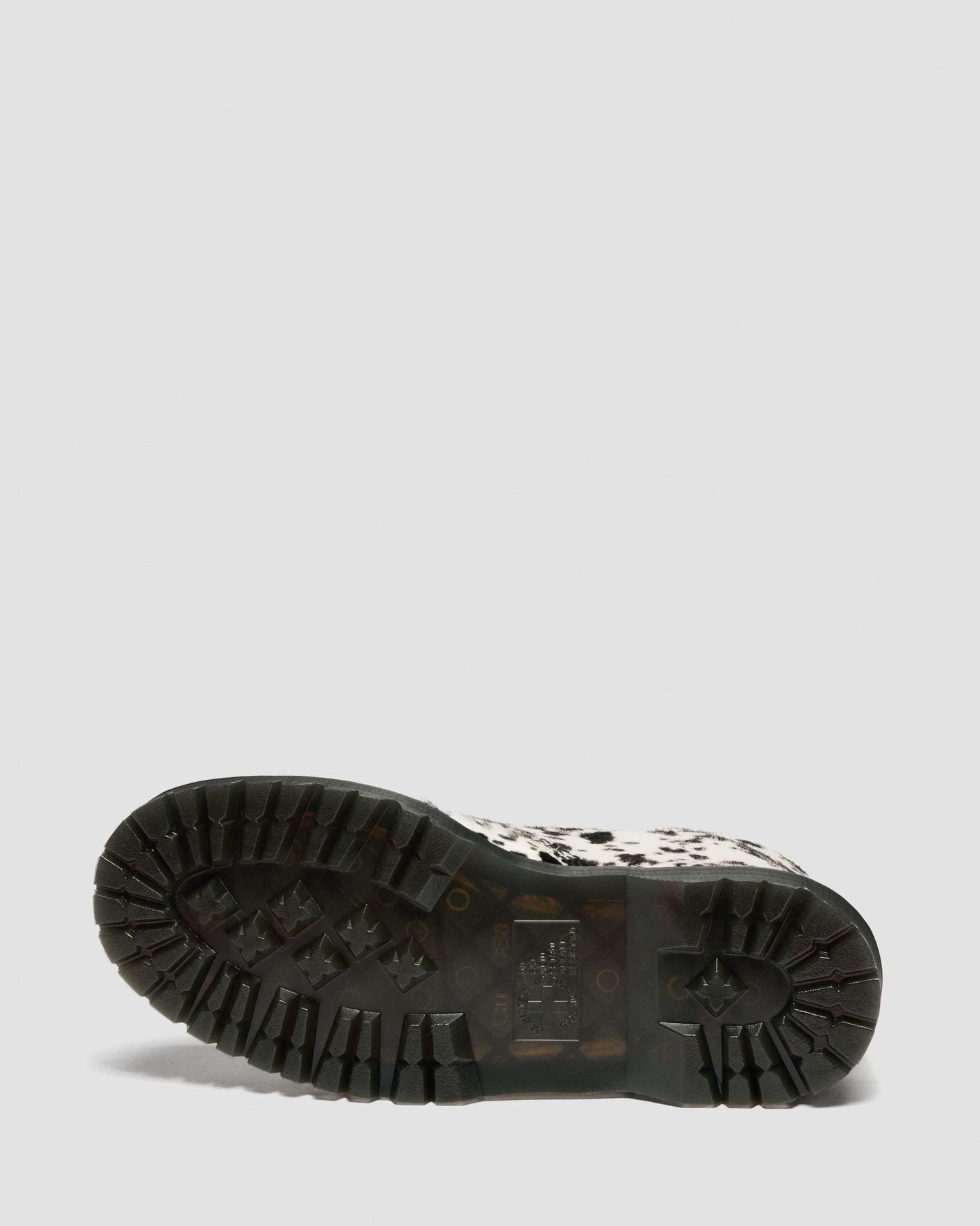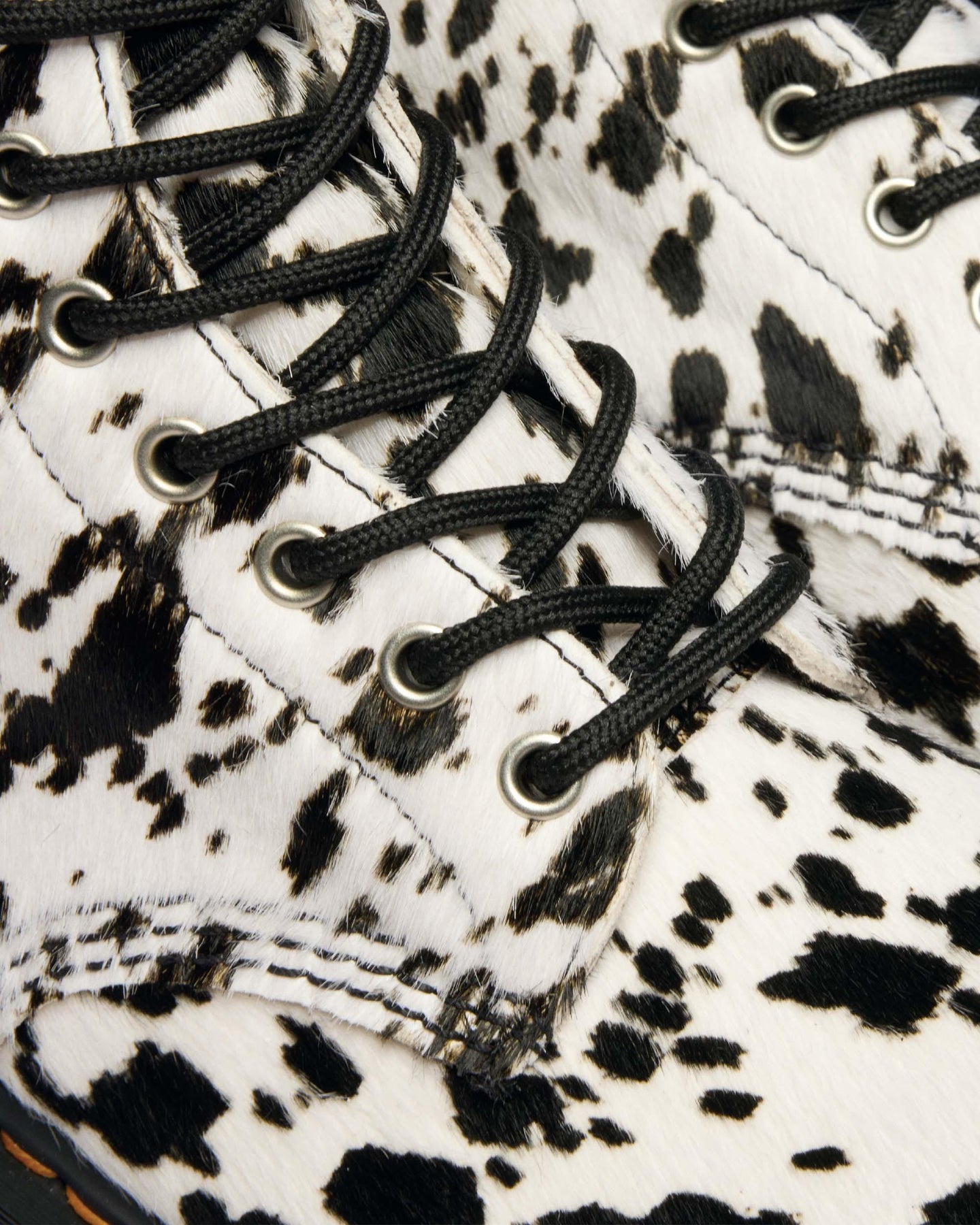 A spotted rework of our Original silhouette. The 1460 boot in statement-making Dalmatian print Hair-On leather. Elevated on our hard-hitting Bex sole for added height, the 1460 boot is secured with a heat sealed welt and anchored with our unmistakable yellow stitch. Finished with antique silver hardware and our signature black-and-yellow heel loop, unleash your style with our new furry Dalmatian editions.