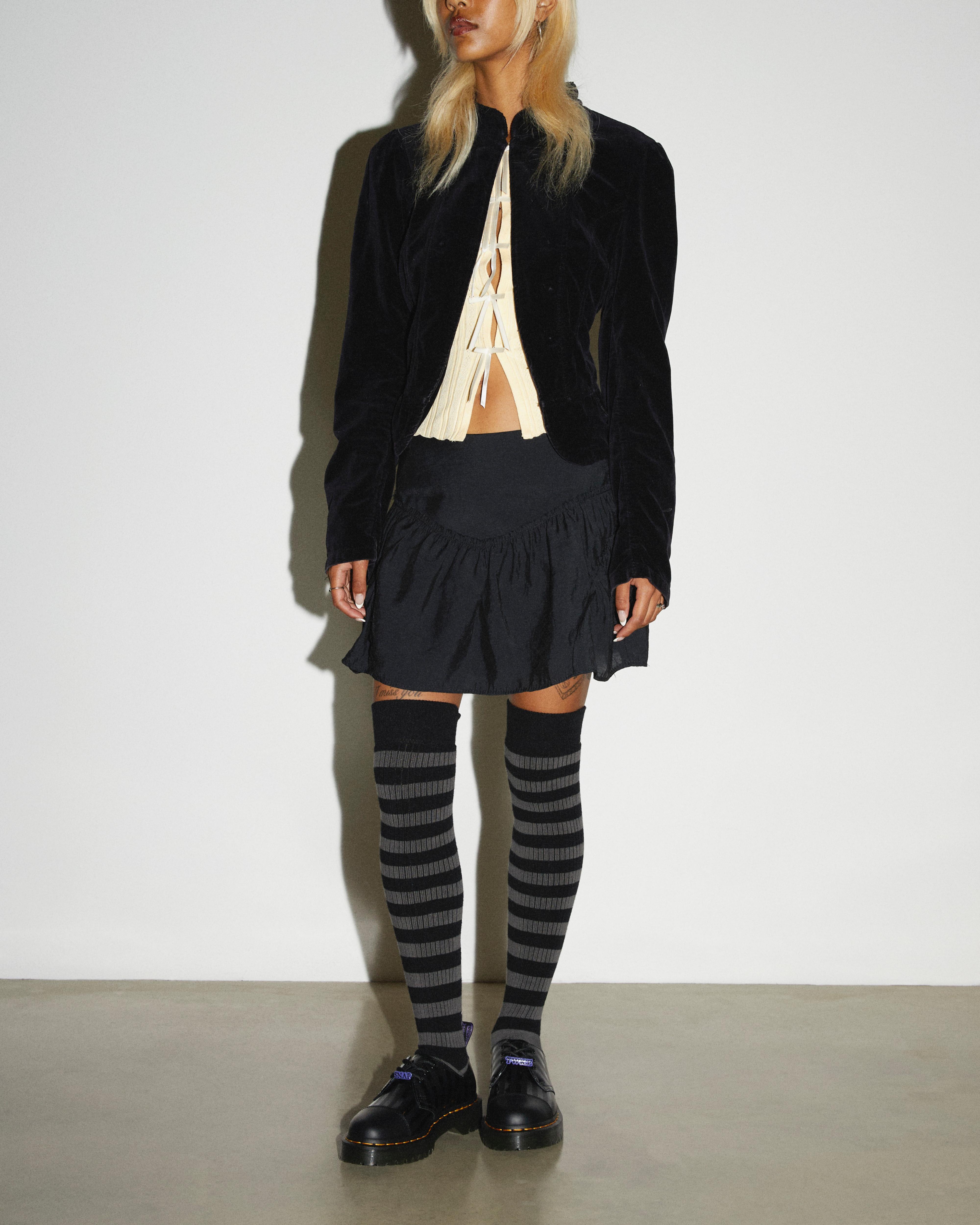 Outcasts are in. Wednesday is back. Try your hardest to disguise your delight in the second chapter of our woefully wonderful collaboration. Featuring boots, shoes and bags dipped in midnight black. A collection that’s anything but ordinary.